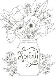 Spring Mason Jar Floral Coloring Page Spring Coloring Sheets Spring Coloring Pages Easter Coloring Pages